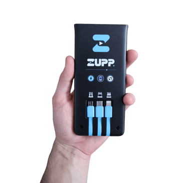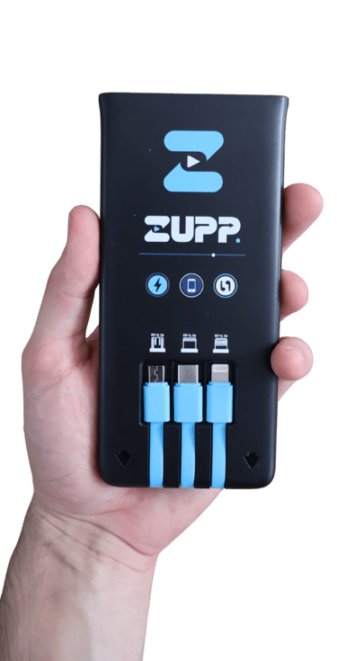 Cada powerbank ZUPP vem com 3 cabos de carregamento: Lightning, micro USB e USB-C. Isso significa que você pode carregar a grande maioria dos smartphones e tablets Android e Apple (Asus, Blackberry, HTC, Huawei, LG, Honor, Nexus, Nokia, Samsung, Sony, Xiaomi, etc.), além de muitos outros dispositivos eletrônicos como alguns celulares, alto-falantes bluetooth, players de MP3, câmeras, leitores, laptops, gamepads, etc.