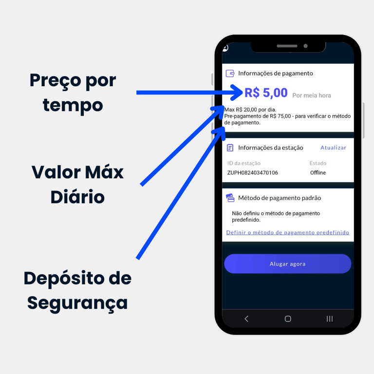 Seu aluguel começa quando o powerbank ZUPP é desbloqueado. Quando você devolve o powerbank ZUPP, a duração é arredondada para a meia hora mais próxima (30 ou 60 minutos). 1 dia de aluguel equivale a 24 horas a partir do momento em que você iniciou o aluguel.